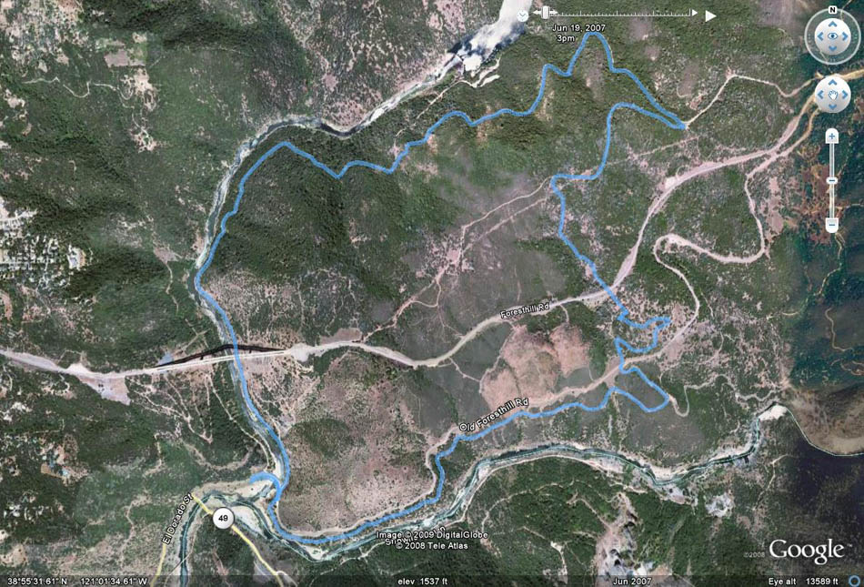 Connector to Foresthill Divide Loop Distance: 16.8 miles Just outside Auburn, near the intersection of Old Forest Hill Road and Hwy 49. The loop runs south of Lake Clementine and a little northeast of the Clementine Loop. Park at N38 55.977 W121 00.704 or on the roadside if full. If you have never ridden this loop, it would be a good idea to take someone who has. ![]() ![]() Click for several other trails in the Auburn area (jpg) Here's a GPX file of the ride. |