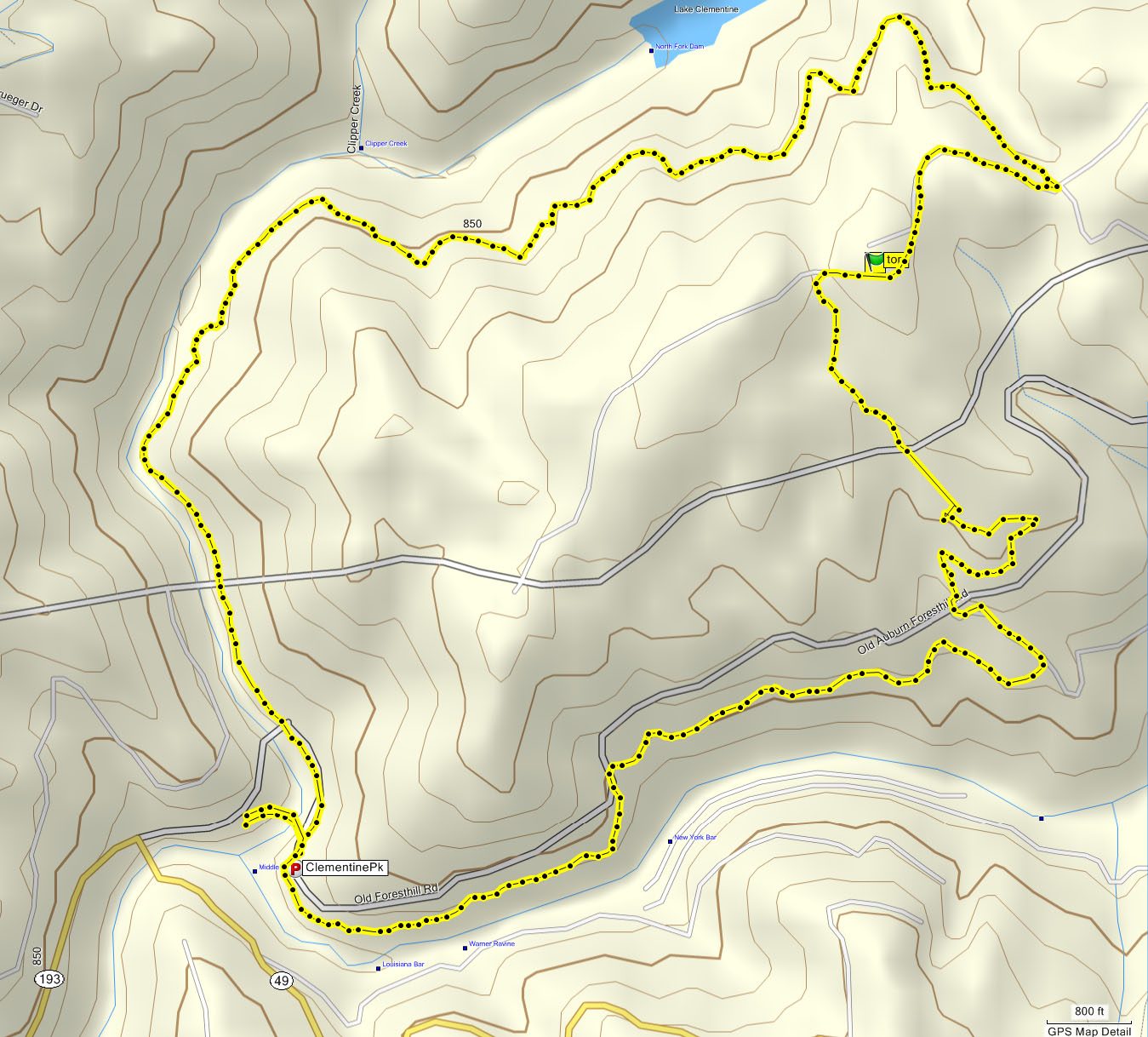 Clementine / Culvert Loop Distance: 7.3 miles Just outside Auburn, near the intersection of Old Forest Hill Road and Hwy 49. The loop runs south of Lake Clementine and near the confluence of the North and South Forks of the American River. Park on side of the road at N38 54.918 W121 02.152 or further west if full. ![]() ![]() Click for several other trails in the Auburn area |
