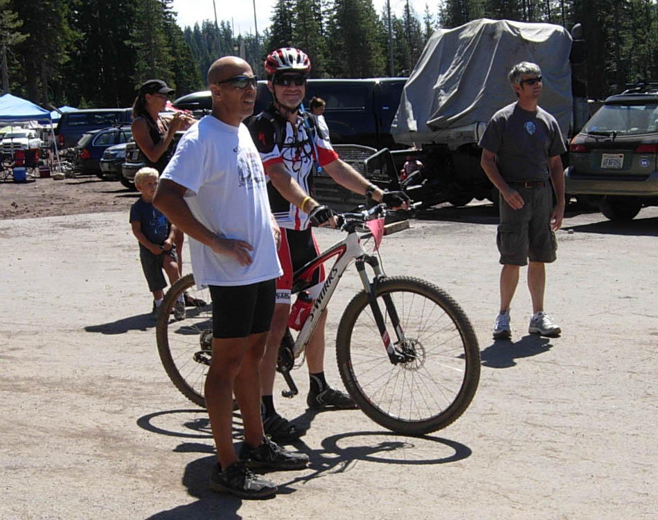 The pre-ride on Friday was an eye-opener, but necessary in order to gain familiarity with the trails and climbs. The course was an 8.5 mile loop, with about 1,100 feet of climbing per lap. There were 3 or 4 sections that were hike-a-bike, very steep and loose, but most were fairly short. The course was quite bumpy, I could not imagine doing this on a hardtail.