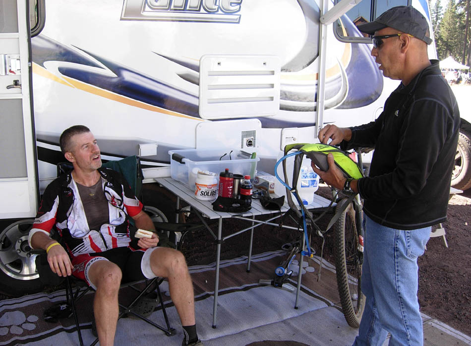 There was plenty of space for racers' trailers and tents, as the Start/Finish area was at the Royal Gorge Summit Lodge and there is a huge parking lot right there. We had my travel trailer which was very comfortable and convenient for pit duties.