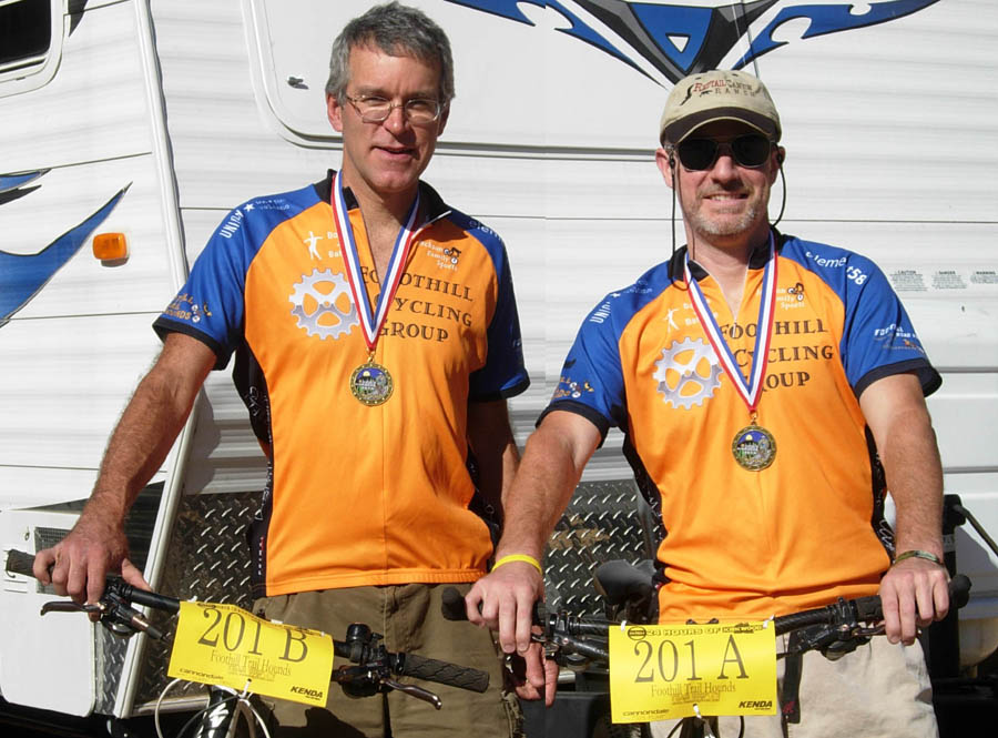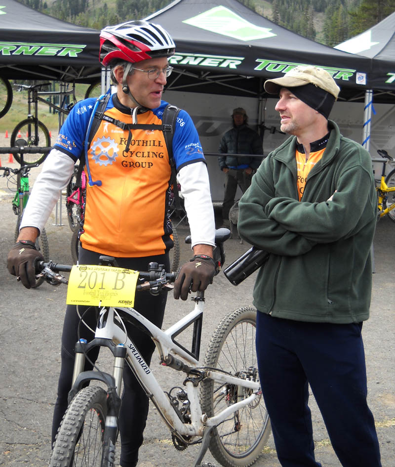 Each lap had a little over 1000 feet of climbing, and there was very little opportunity for speed as the descents were pretty technical and loose with tight turns. My fastest lap was 46 minutes, Mark's was around 56 minutes.