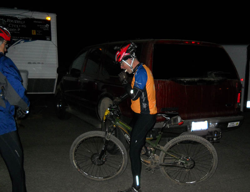 We started discussing strategy, and whether it made sense to continue riding through the night as we had already won the race. We decided Mark would go out on a night lap, and we'd decide after that. He got back, not exactly a happy camper on that course in the dark.