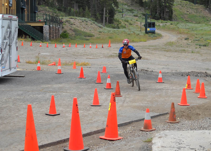 The course was 6.5 miles of loose, steep, tight-turny single track mixed with some fire road and a little pavement. Mostly these are hiking trails that were not constructed with bicycles in mind, except for a brand new section called Robey Wolfe, which is very nicely banked and has several switch-backs. Robey Wolfe is almost all downhill, and partly due to the newness of its construction, several of the corners were very powdery. The powder ruts would get progressively worse as the race went on, but since it was all downhill, you could sort of "surf" the powder and get around the turns, just not very fast. I was very happy to have a 2.2 tire on my front, running about 32 lbs air pressure.