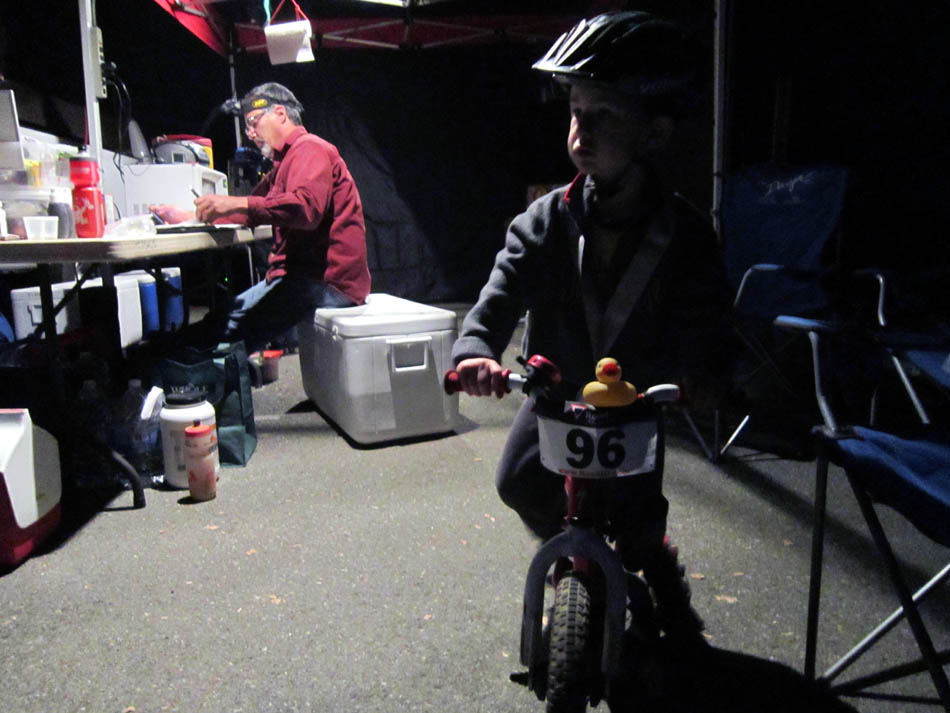 Several laps in, I got some reports that my guy was looking a little rough around the edges. I figured he was playing possum, since I knew he was a strong rider, and he had to know where our pit was. It didn’t really matter, I wasn't planning to change anything on my end until I had a pretty comfortable lead. Eventually, we had about a 30 minute lead, so I felt like I could relax just a little. All this time, we thought we were in the overall lead. Wellll turns out we weren't - there was a kid on a single-speed that was jamming and after checking the official scorer's table around 6pm, we found out he had about 45 minutes on me. OK, so we're in second place, gunning for first.