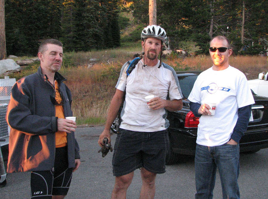 The last aid station was at the bottom of the last climb, and 10 miles from the finish. At that point I started really hoping for a sub-12 hour finish. It would be hard, but possible and I still felt pretty strong, so started hammering the climb as best I could. I also started draining my Camelbak into the dirt because I knew I wouldn’t need to drink it, and wanted to shed weight. I passed several people huffing up the hill that were not happy campers, and finally hit the last 2.5 mile single track through the Royal Gorge Cross Country Ski Area. It was going to be close! I thought I needed to get back by 6:30pm, but we had an extra 2 minutes as the 50-milers went off at 6:30am exactly, then the 100's 2 minutes later. I rounded the last corner and had the finish line in sight, and just sprinted with every ounce of whatever I had left. Crossed at 6:28pm! Sweet. Dale & Bud were waiting for me, which was a tremendous site for sore eyes (sore eyes, legs, back, arms, etc etc).