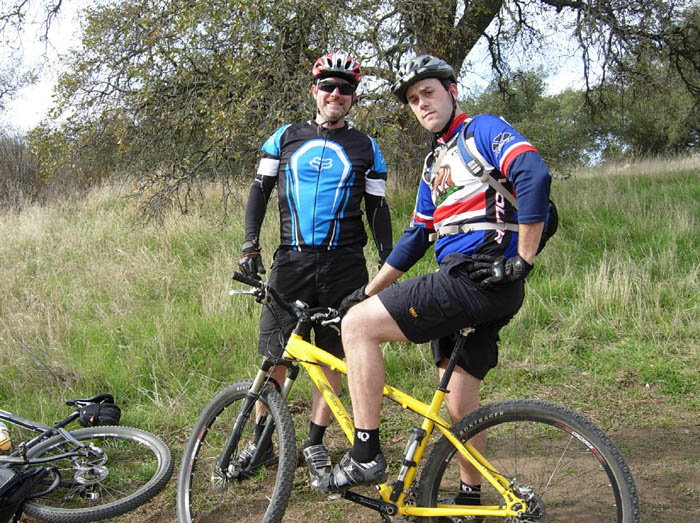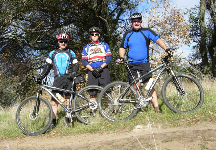 The obligatory "before" shot. (L-R: Kip, Kevin, Cris) First stop was on top of the big hill with a nice view of the lake, which was really low Finally a picture of Kip... Around the backside, before Kevin's monster downhill run (see video) This was Cris's first real ride on the new 29er. In spite of multiple crashes (handles a wee bit different), I think we can say withouth reservation that he LOVES the big wheels! |