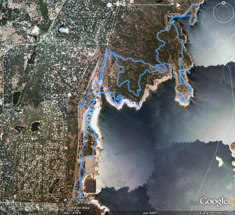 Saturday Dec 13: Hound Hop, Granite Bay, Folsom Lake, CA In spite of the weather forecast for winter storms, the day turned out fantastic. A little on the nippy side but with some long sleeves everyone was comfy. Kip showed us the race course, that combined with another slightly shorter loop yielded a nice 20-mile ride. The trail was pretty easy, with some really fun curvy sections combined with a couple of STEEP short climbs, and one nice long climb. ![]() Warning: this is a huge file (16MB). Alternatively, view a very low-resolution version on YouTube: KevinMTB. View a Google Earth image of the ride, also the vertical profile from my GPS. Check out some photos from the ride: |