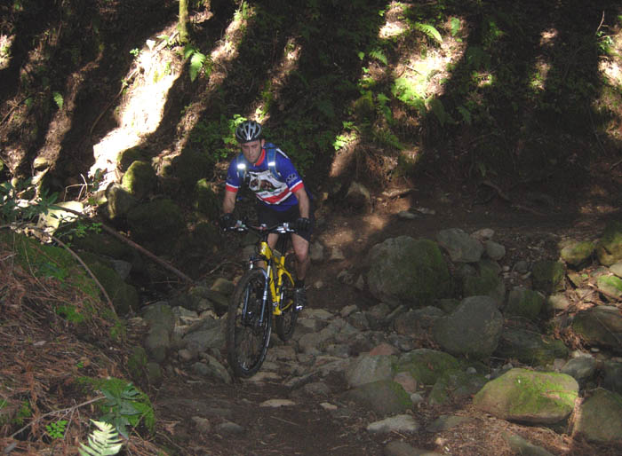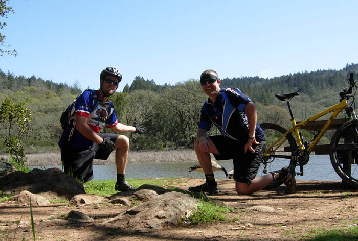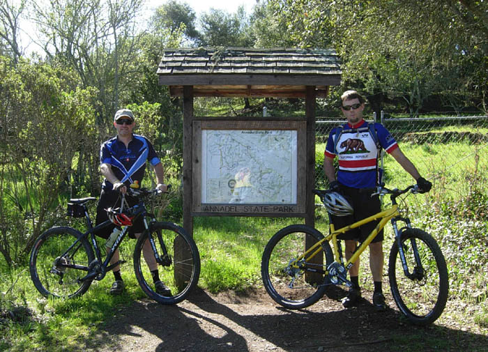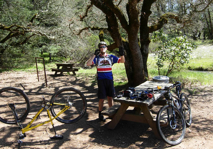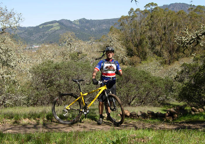 Thursday March 18: Hound Hop (sort of), Annadel State Park, Santa Rosa, CA This place is amazing - 36+ miles of very well marked trails. You really need the trail map to know where you're going, you can download trail map here and there are more maps here. Route yielded 24 miles total (download trail map first): Channel -> W. Richardson -> Two Quarry -> Marsh -> Lawndale -> Schultz -> Pig Flat -> Marsh -> S. Burma -> Louis -> N. Burma -> Live Oak -> Rough Go -> Spring Creek -> Rough Go -> Cobblestone. View the vertical profile from my GPS. You can also check out the Garmin Connect page with all kinds of mapping and GPS data analysis from the ride. Check out some photos from the ride: |